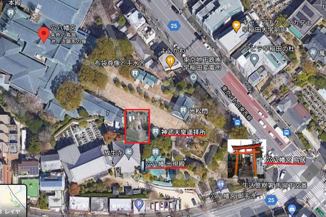 昔はご参拝が出来ましたが、2006年に清水建設が「穴八幡出現殿」を立てて以来は拝観できなくなっっています。